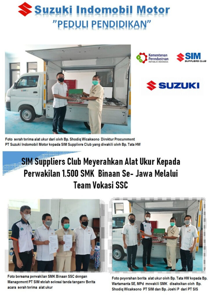 Untuk itu PT. Suzuki Indomobil Motor melalui Team Vokasi SIM Suppliers Club berpartisipasi dan ikut serta dalam mencerdaskan generasi muda melalui Suzuki Indomobil Motor Peduli Pendidikan
